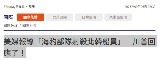 美媒報導「海豹部隊射殺北韓船員」 川普回應了!ETtoday新聞雲2025年09月06日07:39